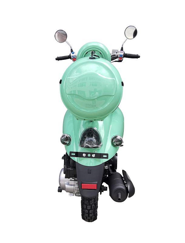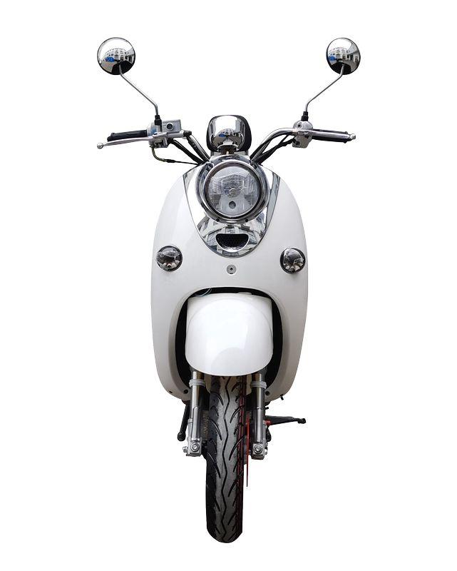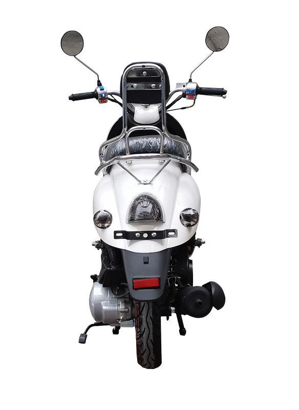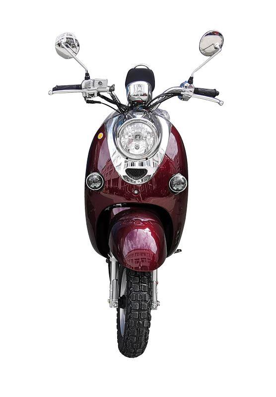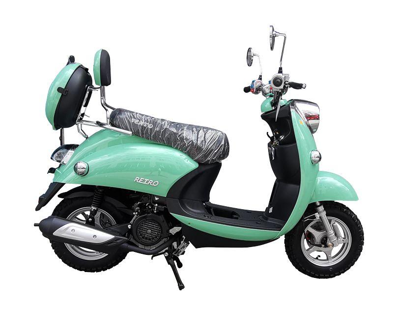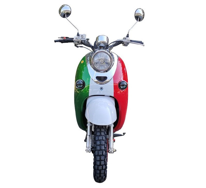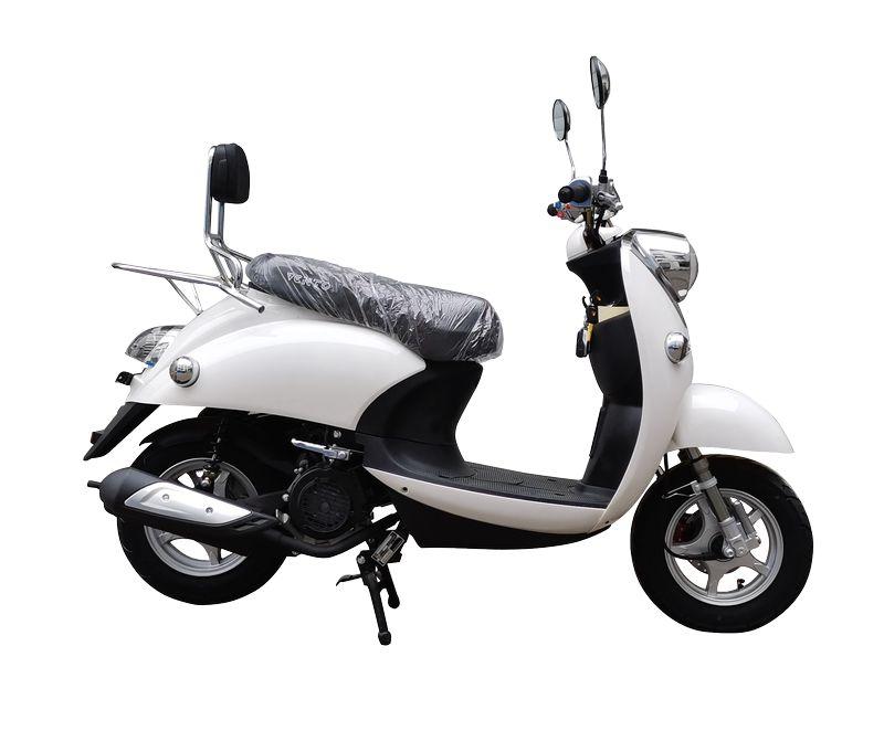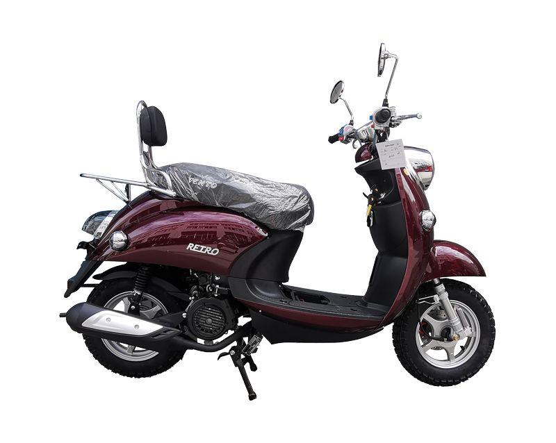 Скутер в классическом итальянском стиле, ретро дизайном от популярного Yamaha Vino с объёмом двигателя 49 сс. Обладает хорошей маневренностью и высокой скоростью. Установлено 2-местное сиденье, а так же оборудован сигнализацией с автозапуском.