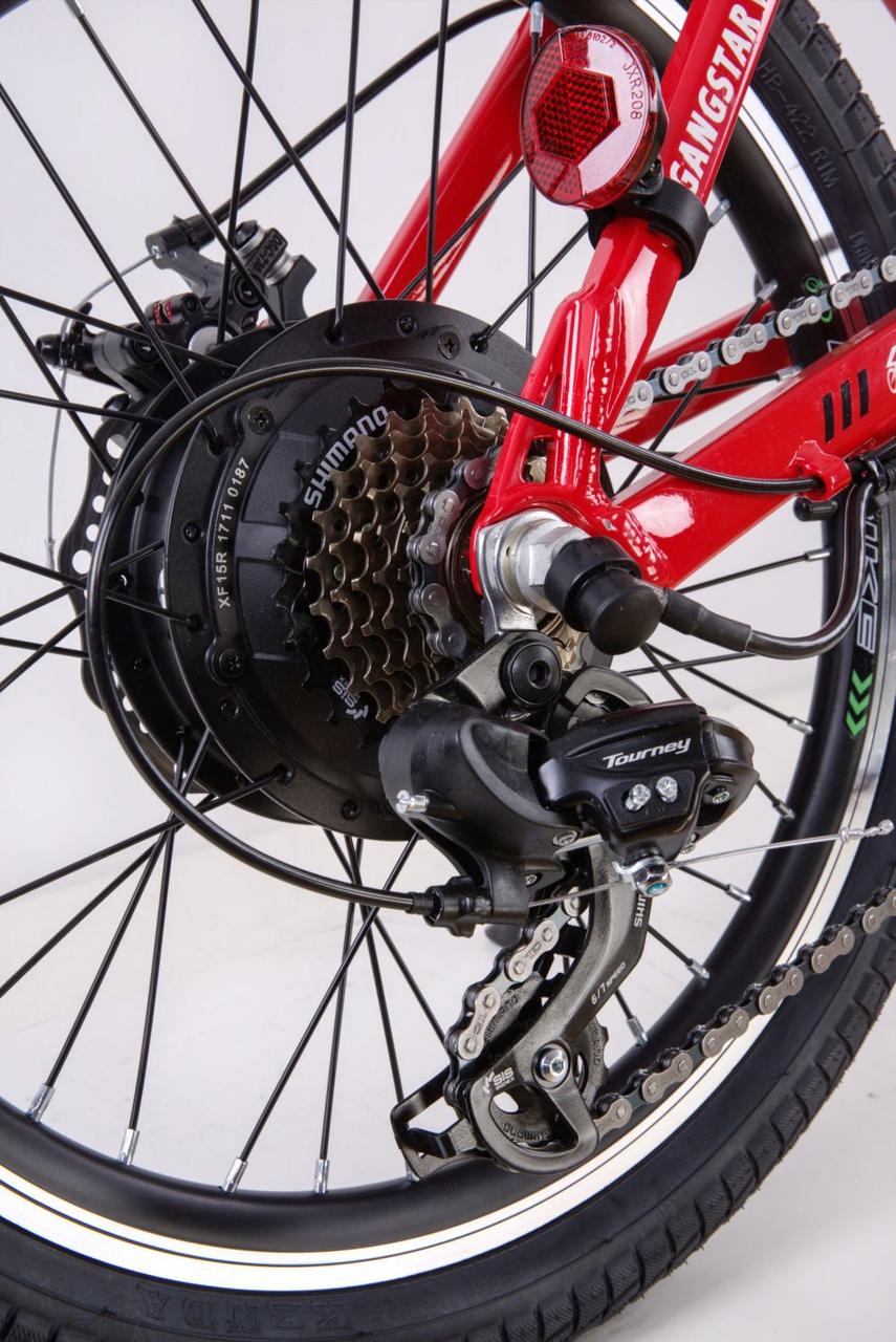 Редукторный мотор MXUS на 500 Ватт с косозубыми шестернями и усиленной обгонной муфтой может разогнать электровелосипед до 38 км/ч. Благодаря такой высокой мощности двигатель не будет сильно изнашиваться даже при максимальной нагрузке на седло. Как и аналогичные модели электровелосипедов, Elbike Gangstar Vip способен работать в трех режимах: