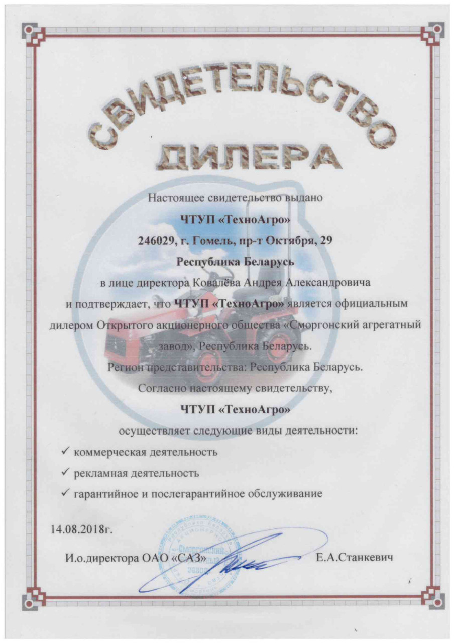 Открытое акционерное общество «Сморгонский агрегатный завод» - машиностроительное предприятие, входящее в состав холдинга «МТЗ-ХОЛДИНГ», специализирующееся на выпуске малогабаритной техники: мотоблоков «Беларус-09Н» и мини-тракторов «Беларус-132Н», «Беларус-152» с полной гаммой дополнительного оборудования к ним для выполнения различных сельскохозяйственных и коммунальных работ с навесными, полунавесными, прицепными и стационарными машинами и орудиями. Также на предприятии изготавливаются плуги полунавесные и оборотные, шести, семи, восьми и девятикорпусные, навесное оборудование для производства коммунальной и уборочно-погрузочной техники на базе тракторов «Беларус», садовые трактора Беларус-921 и его модификации, узлы и детали для тракторов «Беларус», поставляемые на головной конвейер Минского тракторного завода.