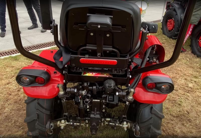 Система трехточечной навески оборудования гарантирует прямолинейное движение техники по участку. Данная модель предполагает индивидуальное навесное оборудование, поскольку стандартные модели агрегировать не получится.