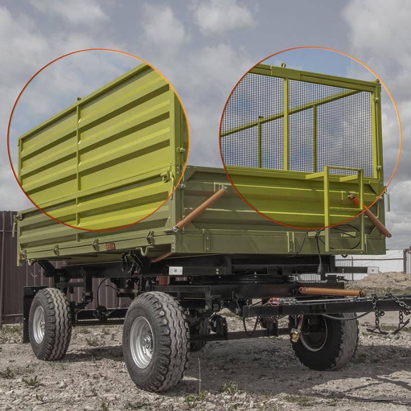 Прицеп предназначен для перевозки различных сельскохозяйственных и строительных сыпучих грузов, органических удобрений с объемной массой до 1600 кг/м3 и до 400 кг/м3 (с надставными сплошными или сетчатыми бортами) с выгрузкой на две боковые стороны и назад.