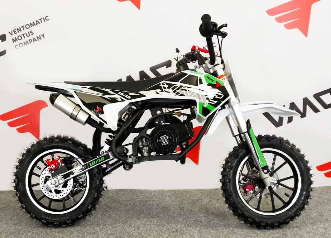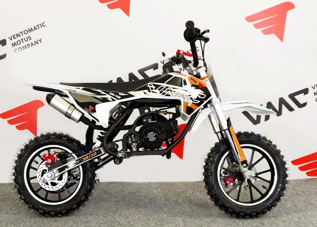 Питбайк 10/10 — детский мини-питбайк. Имеет дерзкое внешнее оформление, хорошо дополняет высокий набор функций байка. Для достаточно лёгкого и маленького мотоцикла показателей вполне достаточно, чтобы получить уйму эмоций.