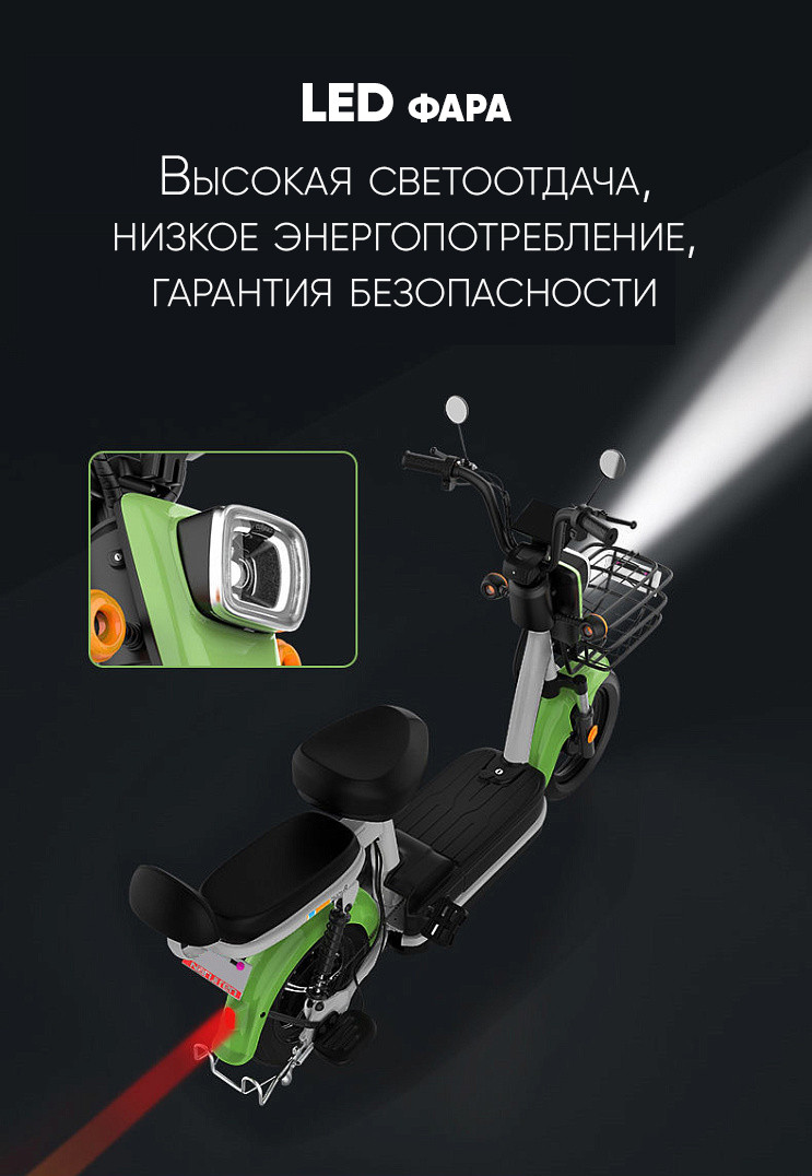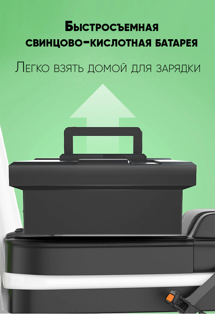 Электровелосипед для комфортных поездок вдвоем! Компактный и маневренный, он оснащен быстросъемным свинцово-кислотным аккумулятором 48V12Ah и педалями, что позволит наслаждаться поездками без частых подзарядок.