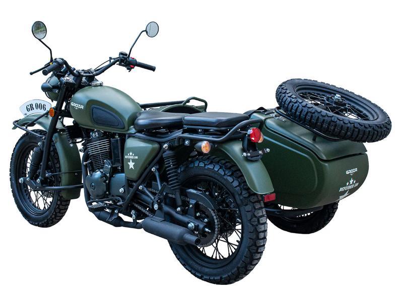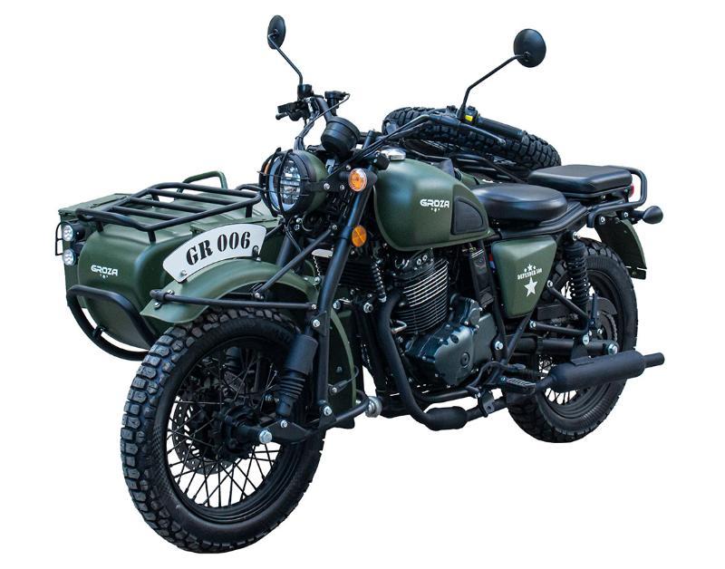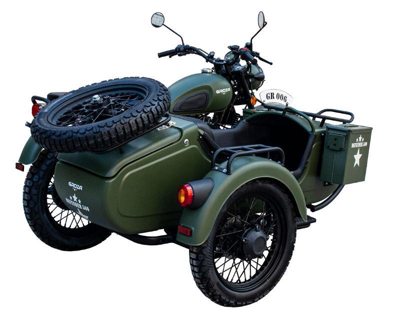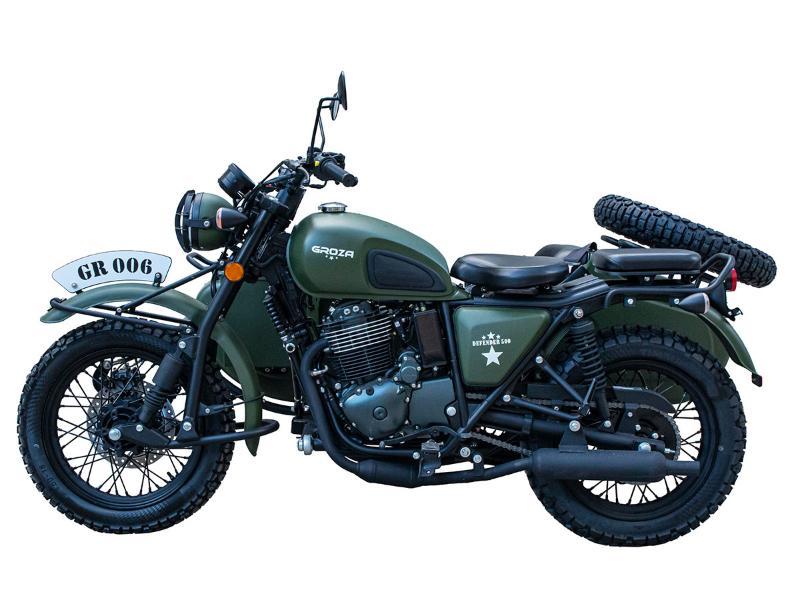 Мотоцикл с коляской GROZA Defender 500 (4T EFI) (2023 г.) предлагает возможности для комфортного передвижения как в городских условиях, так и в условиях лёгкого бездорожья.