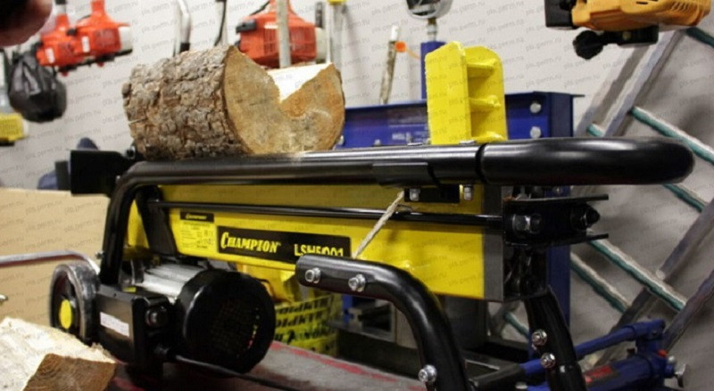 Простое, но весьма полезное устройство имеет прямое и единственное назначение – колоть дрова. Для этого в инструменте встроен силовой механизм, который с определенной силой толкает металлическую насадку-колун на древесную заготовку. Поленья раскалываются на части, и вам остается только сложить их. Дровокол Champion LSH5001 является гидравлическим.